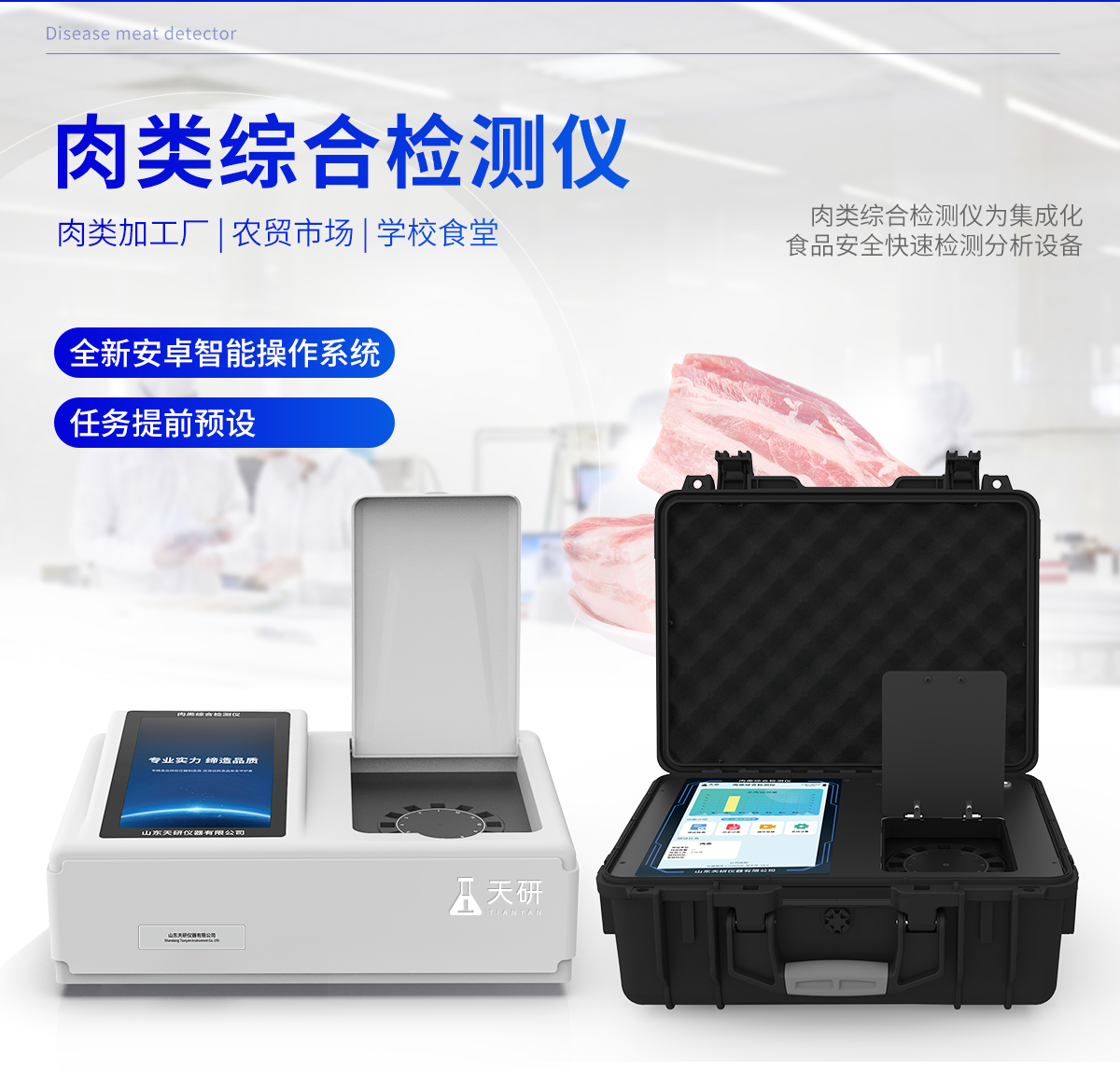 產(chǎn)品描述:產(chǎn)品介紹: 肉類(lèi)綜合檢測(cè)儀可快速檢測(cè)幾十種項(xiàng)目,包含各種獸藥殘留:抗生素類(lèi)殘留、瘦肉精激素類(lèi)殘留;病害肉診斷:肉類(lèi)新鮮度、肉中組胺、揮發(fā)性鹽基氮;水產(chǎn)品安全篩查等現(xiàn)場(chǎng)的定性定量檢測(cè)。 該肉類(lèi)綜合檢測(cè)儀為集成化肉品安全快速檢測(cè)分析設(shè)備,廣泛應(yīng)用于養(yǎng)殖場(chǎng)、屠宰場(chǎng)、食品肉產(chǎn)品深加工企業(yè)【詳情】
