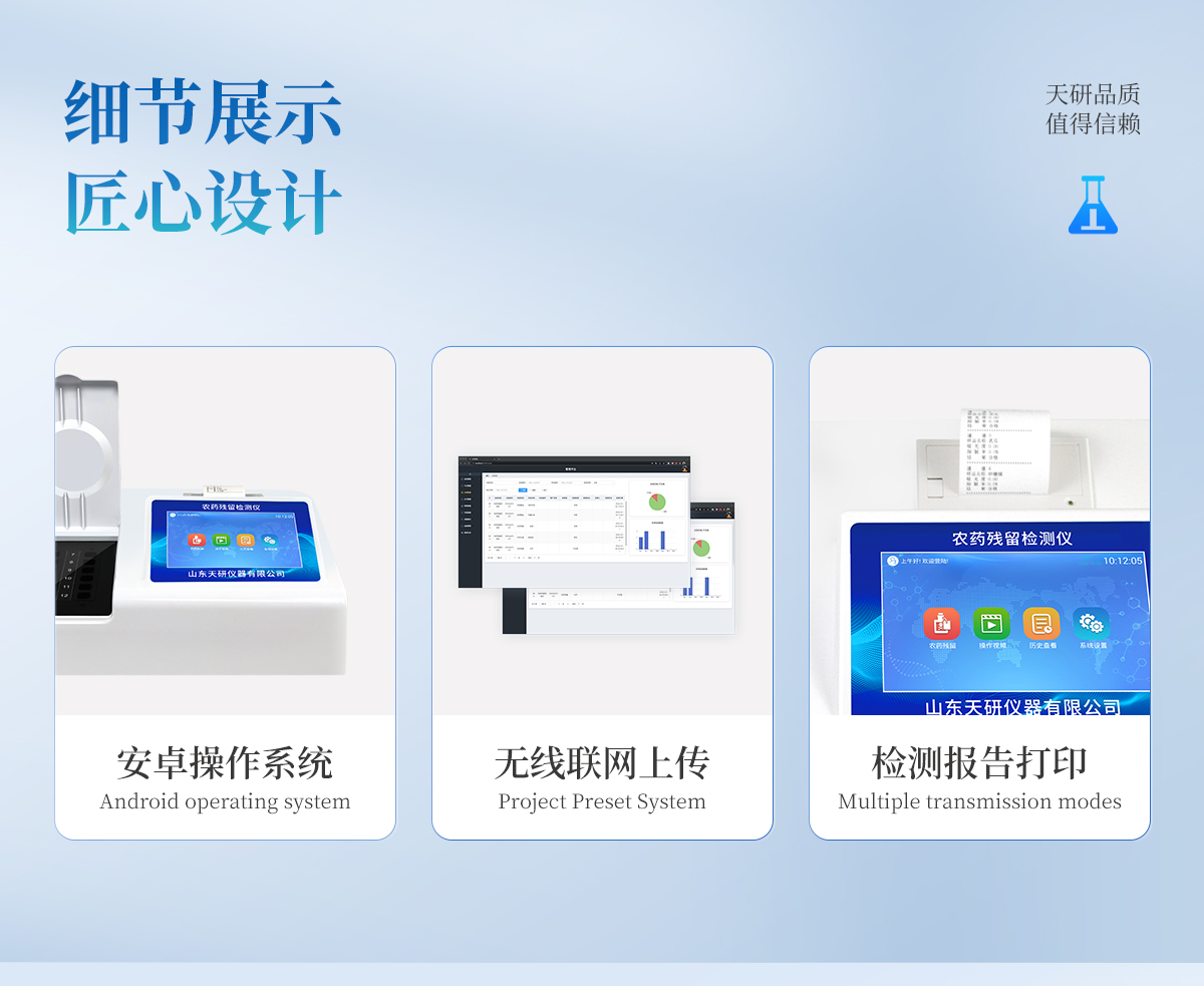 廣泛應用于主要用于蔬菜、水果、茶葉、糧食、農副產品等食品中有機磷和氨基甲酸酯類農藥殘留的快速檢測;此外還可用于果蔬茶生產基地和農貿批發銷售市場現場檢測,餐館、學校、食堂、家庭果蔬加工前的安全速測等。