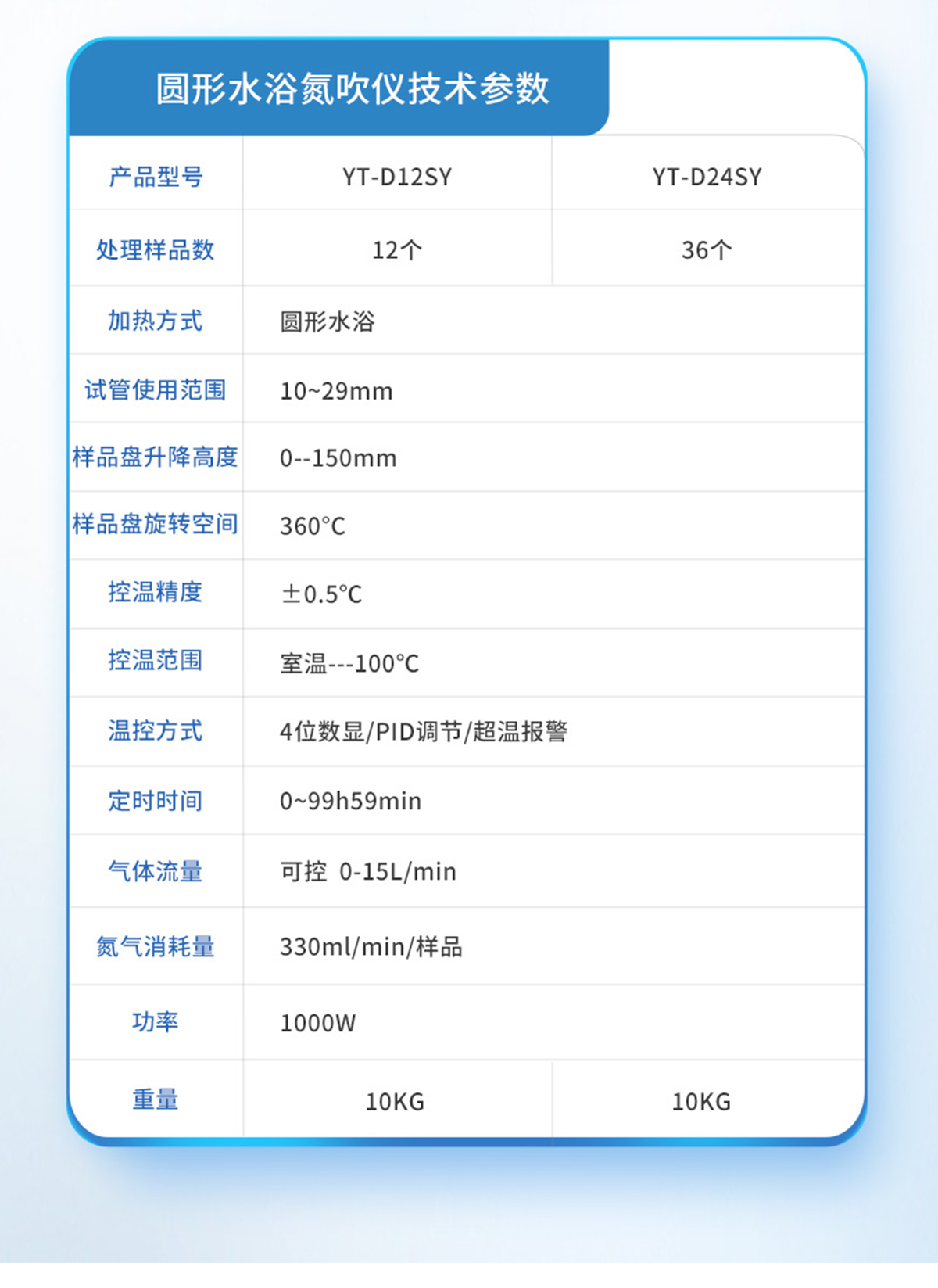 | YT-D12S | 12個 | Ф16mm | 330ml/min/樣品(可調節) | 0-15L/min | 試管架一個 | ±0.5℃ | 室溫---100℃ | 數顯控溫 | 340*200*460 | 600W | 7KG |