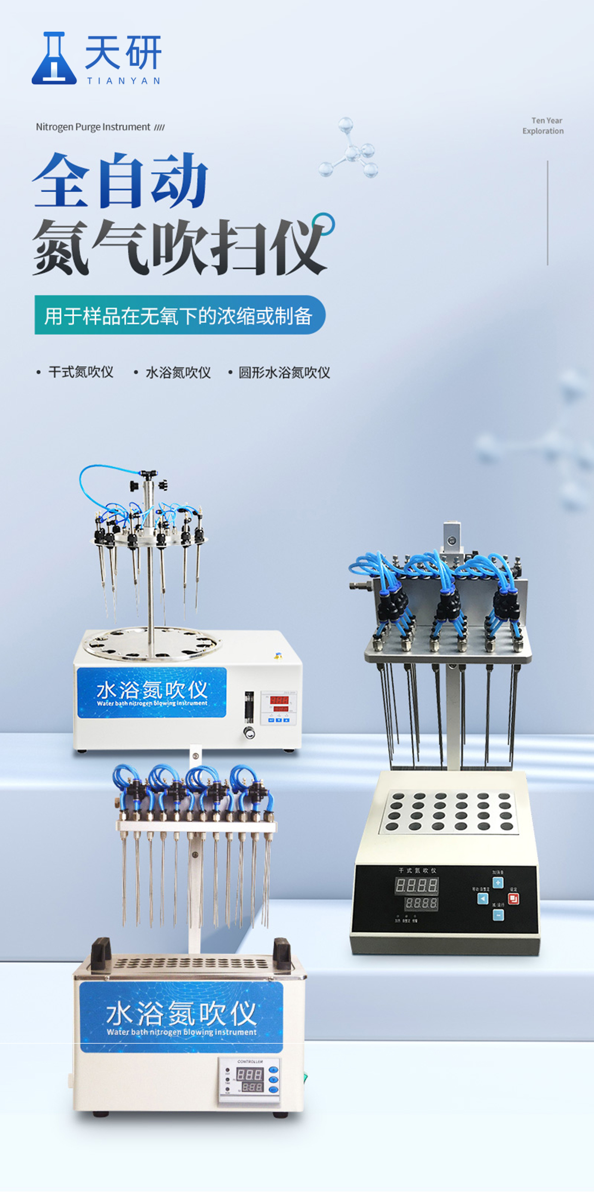 干式氮吹儀是氮氣濃縮裝置、氮氣吹掃儀的簡稱,主要用于大批量樣品在無氧下的濃縮或制備。廣泛應(yīng)用于農(nóng)殘分析、商檢、食品、環(huán)境、制藥、生物制品等行業(yè), 氮吹儀是通過微電腦控制技術(shù),加熱是通過高純鋁材料做為加熱介質(zhì),加熱速度快,達到控溫更加準(zhǔn)確,控溫范圍廣,可以同時處理36組樣品.