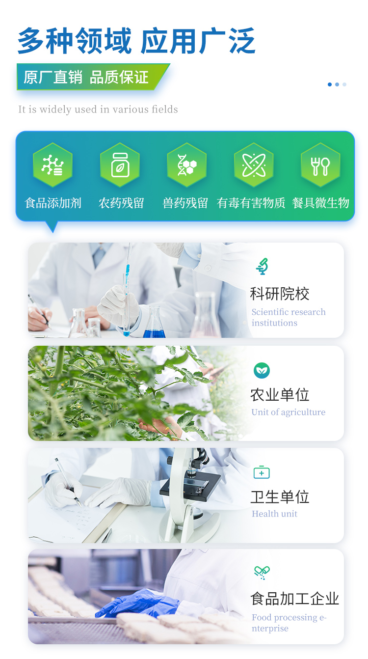 用于快速檢測食品中吊白塊,儀器預留其他項目檢測程序和端口,根據日后需求可方便的自主增加檢測項目。日后可升級為檢測,水產品,肉制品,面制品的綜合類型儀器。
