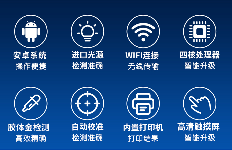 | 七寸彩屏全觸摸輸入,支持手寫功能支持WIFI,支持3G、4G; | 支持金標(biāo)項(xiàng)目檢測(cè)定性檢測(cè),結(jié)果可顯示樣品陰陽(yáng)性結(jié)果 | 內(nèi)置智能操作系統(tǒng)軟件內(nèi)置大容量存儲(chǔ)數(shù)據(jù)庫(kù),可隨時(shí)分類查詢已測(cè)項(xiàng)目; | ☆數(shù)據(jù)可局域網(wǎng)和互聯(lián)網(wǎng)數(shù)據(jù)上傳,可構(gòu)建食品安全監(jiān)管系統(tǒng)平臺(tái),支持LIMS 系統(tǒng),內(nèi)置USB接口,可擴(kuò)展外設(shè); | ☆自動(dòng)精準(zhǔn)識(shí)別CT線位置,糾錯(cuò)范圍可達(dá)±3mm; | 支持金標(biāo)項(xiàng)目檢測(cè)定性檢測(cè),結(jié)果可顯示樣品陰陽(yáng)性結(jié)果; | 檢測(cè)響應(yīng)時(shí)間:< 3S | 讀數(shù)精度:CV<1% ; | 12V低壓電源供電,便攜式設(shè)計(jì),適合野外,車載或室內(nèi)等各種場(chǎng)所使用 |