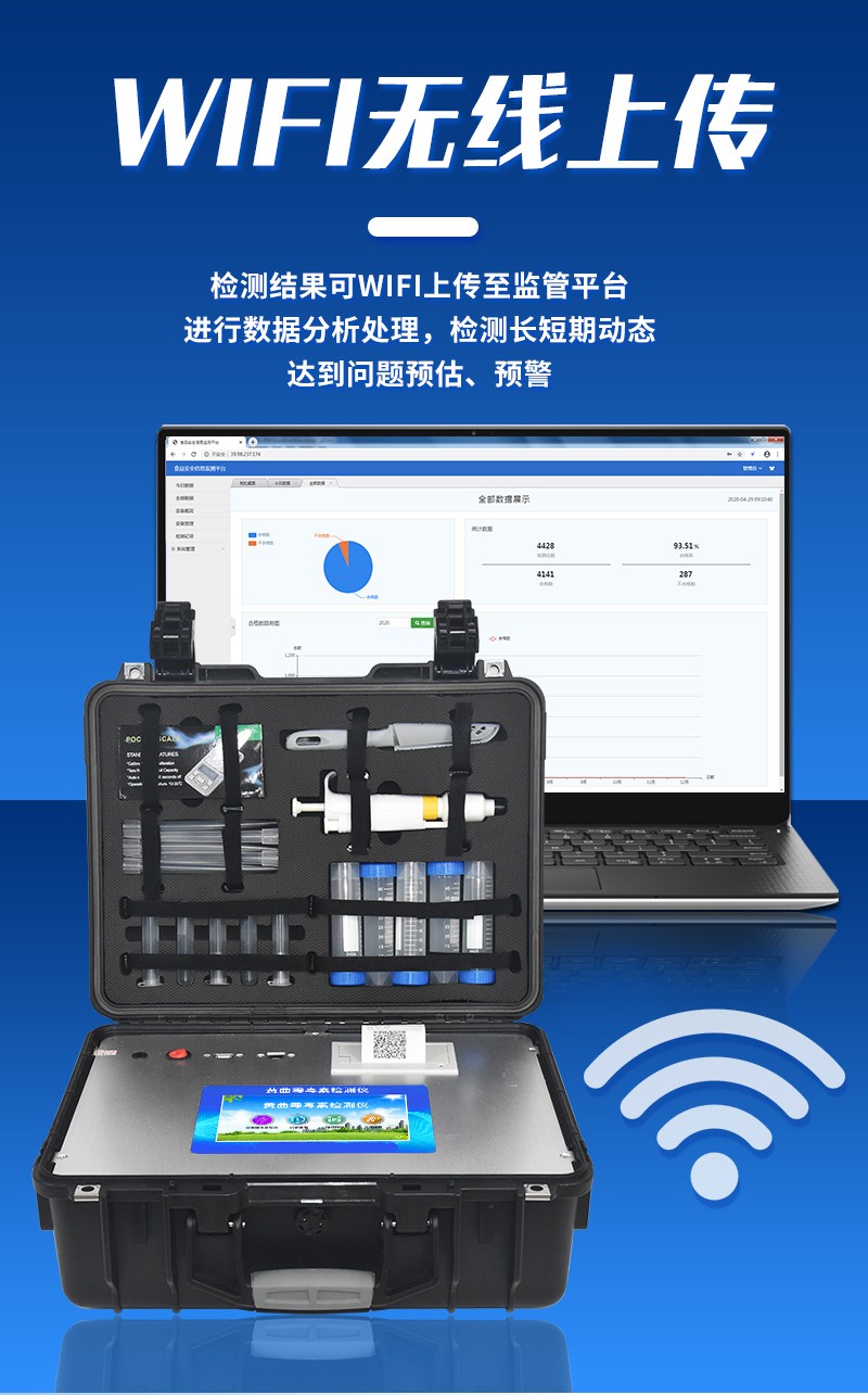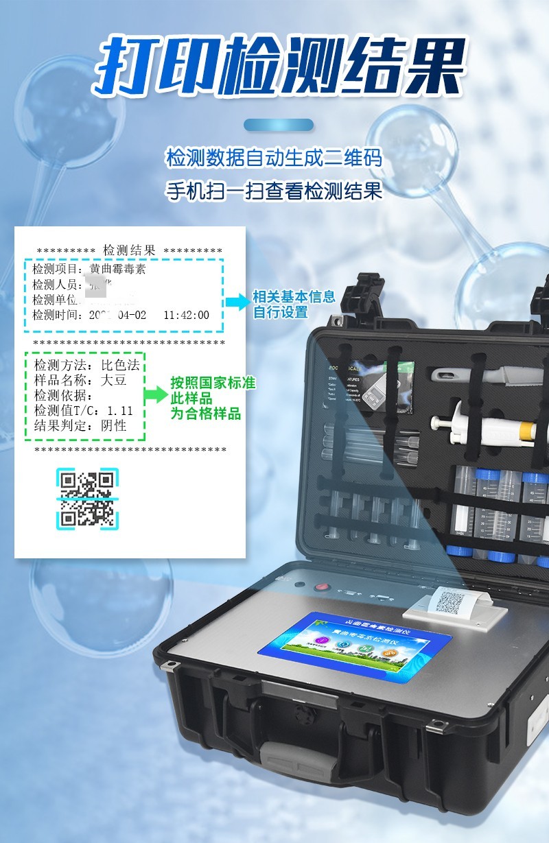 | 工作模式:安卓5.1系統(tǒng)模式 | 軟件支持:安卓軟件平臺(tái) | ☆檢測(cè)項(xiàng)目:可檢測(cè)農(nóng)藥殘留、食品添加劑、色素、可現(xiàn)場(chǎng)快速檢測(cè)農(nóng)藥殘留、鹽酸克倫特羅、沙丁胺醇、萊克多巴胺、四環(huán)素類、硝基呋喃類、磺胺類、沙星類、氯霉素、孔雀石綠磺胺類,并且可以連接食品安全監(jiān)控系統(tǒng)。 | 測(cè)量原理:光電池測(cè)量反射衰減信號(hào)強(qiáng)度; | 測(cè)量速度:≤5s; | 儲(chǔ)存功能:儲(chǔ)存至少20000個(gè)結(jié)果數(shù)據(jù),支持自定義查詢; | 藍(lán)牙模塊:藍(lán)牙4.2 | 檢測(cè)精度:CV值小于1%(標(biāo)準(zhǔn)卡),批間差小于3%(標(biāo)準(zhǔn)卡); | 檢測(cè)輸出:支持色度檢測(cè),CT比值檢測(cè),T線檢測(cè)等多種擬合方式; | 內(nèi)置熱敏打印機(jī) | ☆數(shù)據(jù)輸出:內(nèi)置WIFI,支持無(wú)線數(shù)據(jù)上傳,標(biāo)準(zhǔn)RS232串口,網(wǎng)絡(luò)接口和USB2.0接口; | ☆內(nèi)置食品安全信息系統(tǒng),一鍵數(shù)據(jù)上傳。 | 儀器外形尺寸:300*250*79mm | ☆操作系統(tǒng)配置:7吋液晶屏、4核處理器、1600萬(wàn)像素 | 凈重:2.0kg。 |