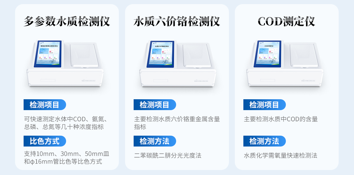提取一定量水體樣品,經過前處理后根據不同檢測項目按照試劑說明書滴入檢測試劑,檢測試劑會與水體中的待測物質發生反應,反應液呈現特定的顏色。