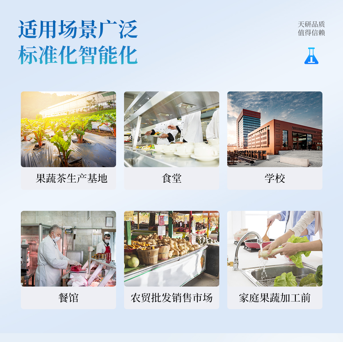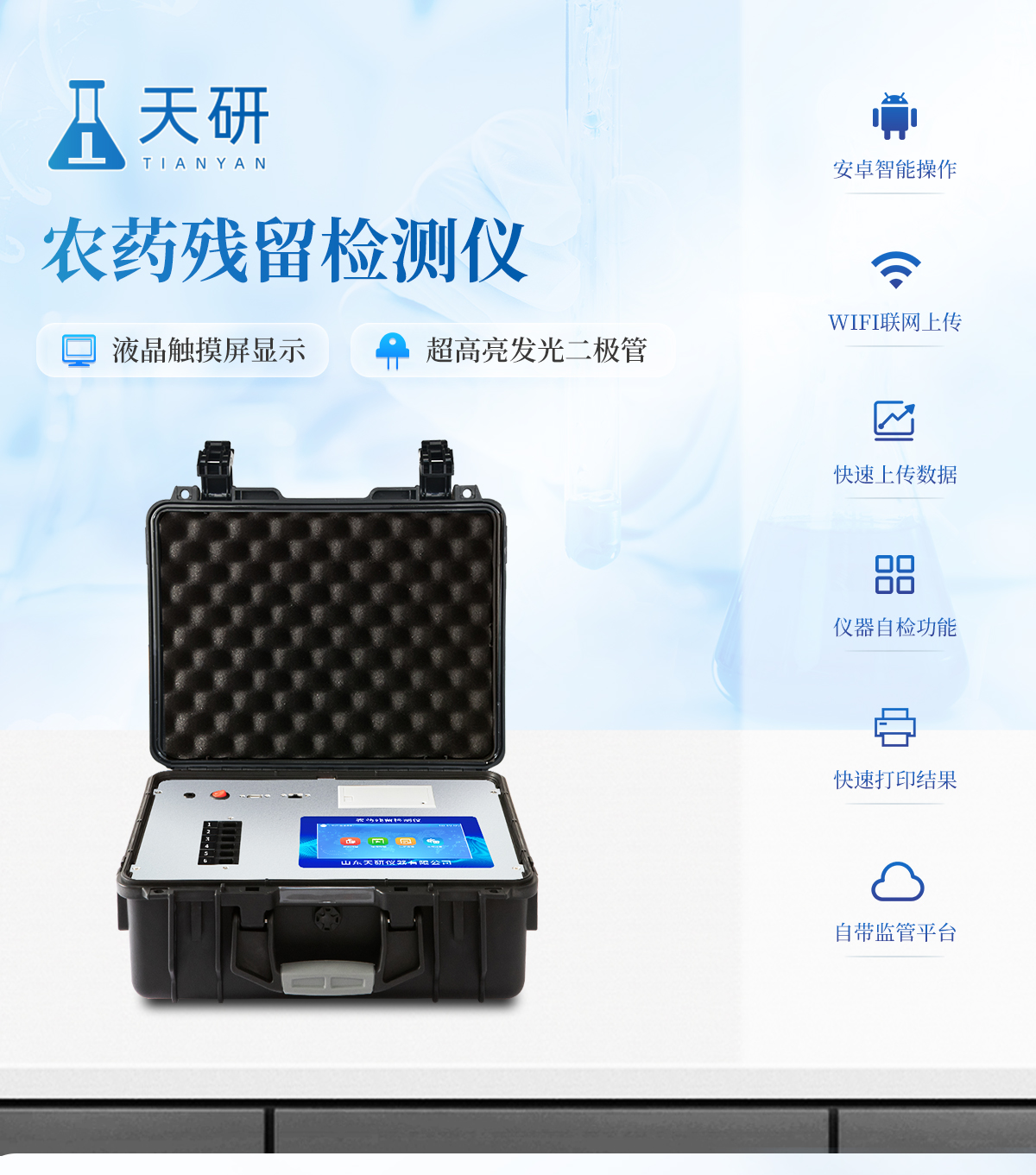 | 隨著人民生活水平的不斷提升,市場對茶葉的把控愈加嚴格。針對現狀,我司專門研發生產--茶葉專用的農藥殘留速測儀;定位茶農、茶商、茶葉企業使用。 此外還可用于果蔬茶生產基地和農貿批發銷售市場現場檢測,餐館、學校、食堂、家庭果蔬加工前的安全速測等。 | 檢測通道: 5個檢測通道,可以同時測試多個樣品,每個樣品由程序控制分別獨立工作,不會互相干擾。 | 顯示方式:≥5英寸液晶觸摸屏顯示,人性化中文操作界面,讀數直觀、簡單。 | 配備嵌入式高速熱敏打印機,可選擇手動打印或者自動打印,三分鐘出打印結果。 | 光源采用進口超高亮發光二極管,具有低功耗、穩定性強、高靈敏度,高檢測精度,高重復性精度,光源可控、響應速度快等優點。 | 采用標準USB接口設計,免驅動安裝,方便數據的存貯和移動,并可隨時與計算機直接相連,并且可用計算機控制儀器。實現數據查詢、瀏覽、分析、統計、打印等。 | 智能化程度高,儀器具有自檢功能:具有開機自檢和調零功能,具有自動檢測重復性功能 | 內置強大的數據庫,可在儀器上直接選擇樣品名稱、檢測指標、送檢單位等信息,也可在儀器上直接編輯錄入樣品名稱、檢測指標、送檢單位等信息并保存進樣品數據庫。 | 支持Wifi網絡,數據可局域網和互聯網數據上傳,檢測結果直接傳至食品安全監管平臺。進行區域食品安全監管及大數據分析處理,檢測區域食品安全長短期動態,達到食品安全問題預估、預警 |