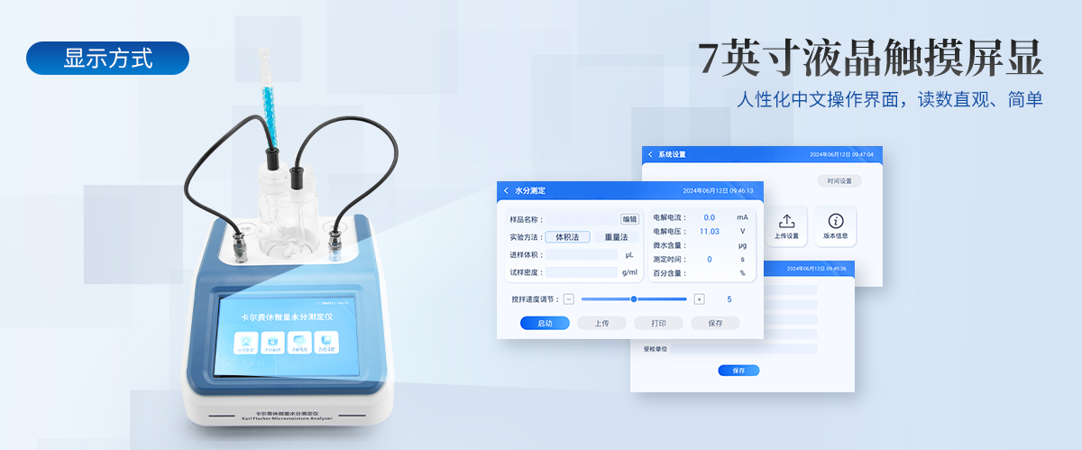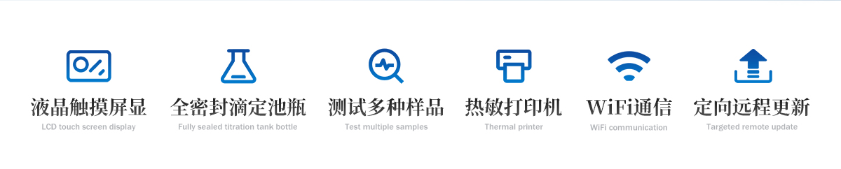 | 1.采用了原裝進口7.0英寸800*480像素真彩TFT-LCD大屏幕彩色顯示器,鍵盤采用人體感應式觸摸屏,全中文操作界面,軟件界面顯示直觀大方,內容豐富,操作內容方便自如,漢字提示,靈活、具有檢測靈敏閾高、操作簡單、測試速度快、重復性好等特點. | 2.儀器具有試驗結果存儲、打印、計算功能;樣品測定過程由儀器自動控制,攪拌、測定60秒左右自動完成,直接顯示測定結果;全密封滴定池瓶,避免試劑與人接觸,也避免環境濕度的影響;儀器中文液晶顯示,并具有自動計算和打印功能,能打印出百分含量、樣品編號、試驗員、實驗日期等內容;儀器準確度為:①水含量小于10微克水時,測量值誤差小于2ug水;②水含量在10微克-1000微克水時,測量誤差≤2ug水;③水含量在1000微克以上時,測量值誤差≤0.2%(不含進樣誤差); | 3.核心主機采用TI 公司AM3354處理器,Cortex-A8內核,1GHz主頻;操作系統采用Windows Embedded Compact 7實時工控系統。徹底擯棄了無核無操裸奔的單片機,真正實現了儀器操控的現代化,使儀器步入新的智能時代。 |