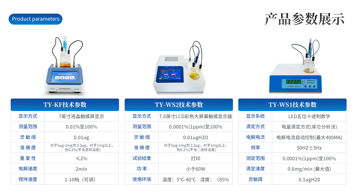 | 1、GB/T7600《運行中變壓器油水分含量測定法(庫侖法)》 | 2、GB6283《化工產品中水分含量的測定卡爾費休法(通用方法)》 | 3. SH/T0246《輕質石油產品中水含量測定法(電量法)》 | 4、SH/T0255《添加劑和含添加劑潤滑油水分測定法(電量法)》 | 5、GB/T11133《液體石油產品中水含量測定方法(卡爾費休法)》 | 6、GB/T7380《表面活性劑含水量量的測定(卡爾費休法)》 | 7、GB10670《工業用氟代甲烷類中微量水分的測定卡爾費休法》 | 8、GB/T606化學試劑水分測定通用方法卡爾費休法》 | 9、GB/T8350《變性燃料乙醇》 | 10、GB/T8351《車用乙醇汽油》 | 11、GB/T3776.1《農藥乳化劑水分測定法》 | 12、GB/T6023工業用丁二烯中微量水分的測定卡爾費休庫侖法》 | 13、GB/T3727工業用乙烯、丙烯中微量水的測定 | 14、GB/T7376工業用氟代烷烴中微量水分的測定 | 15、GB/T18619.1天然氣中水含量的測定卡爾費休-庫侖法 | 16、GB/T512《潤滑脂水分測定法》 | 17、GB/T1600-農藥水分測定方法》 | 18、GB/T11146《原油水含量測定法(卡爾費休庫侖法)》 | 19、GB/T12717《工業用乙酸酯類試驗方法》 | 20、GB/T5074焦化產品水分測定方法 | 21、GB/T18826工業用1,1,2-四氟乙烷(HFC-134a) | 22、符合國家藥典中關于卡爾費休法測定藥品中水分含量的技術要求 | 23、GB/T260標準石油產品水分測定法 |
