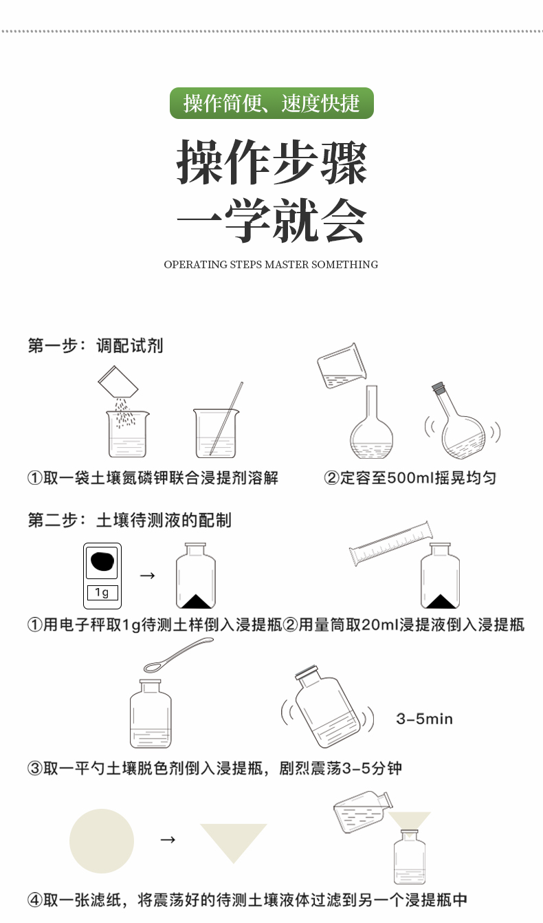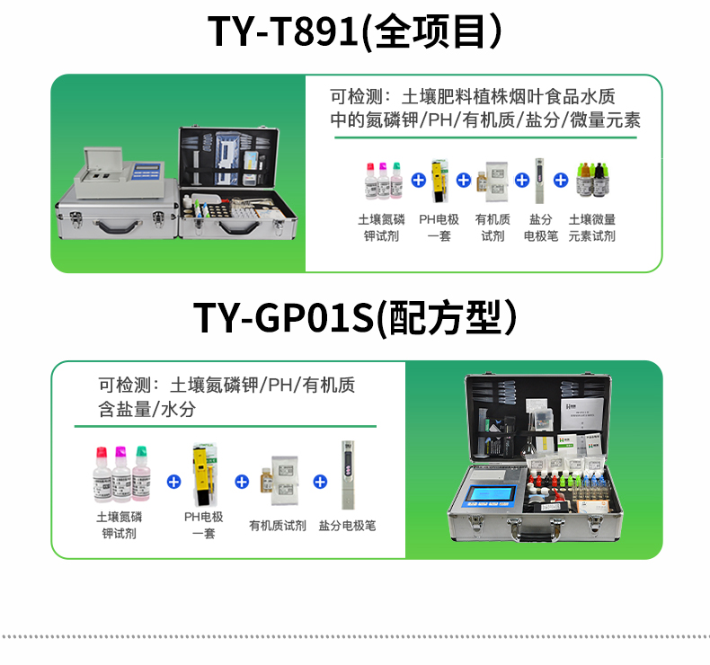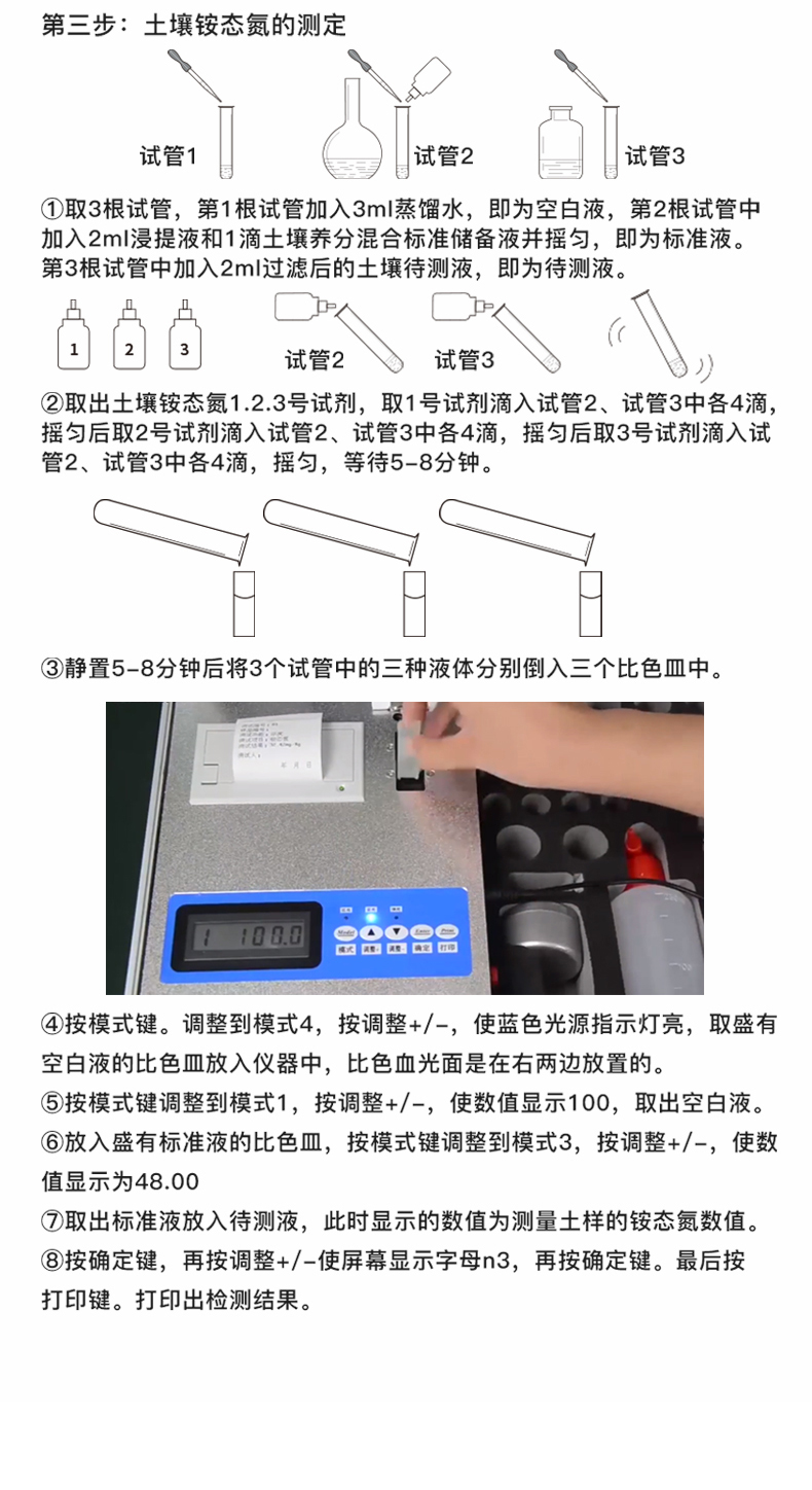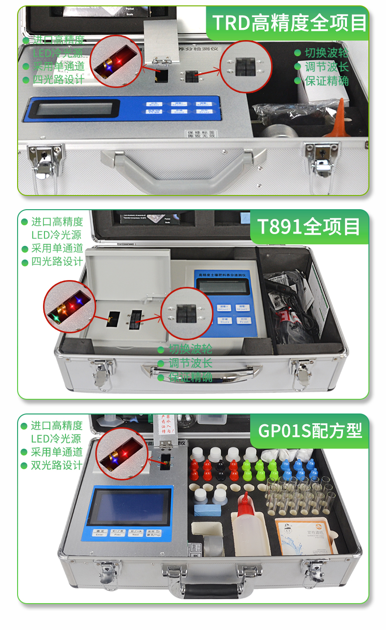 | 全項目土壤肥料養分速測儀功能全:測試項目國內外*全(各類藥劑均可選購)。 | 配套齊全:該儀器集藥、器、儀為一體,攜帶方便,相當于一個小型實驗室。適于農業服務部門或農資經銷商、肥料廠商測土施肥和鑒別肥料真假。 | 操作簡便、速度快捷,成品藥劑開瓶即用,無須配置。 |