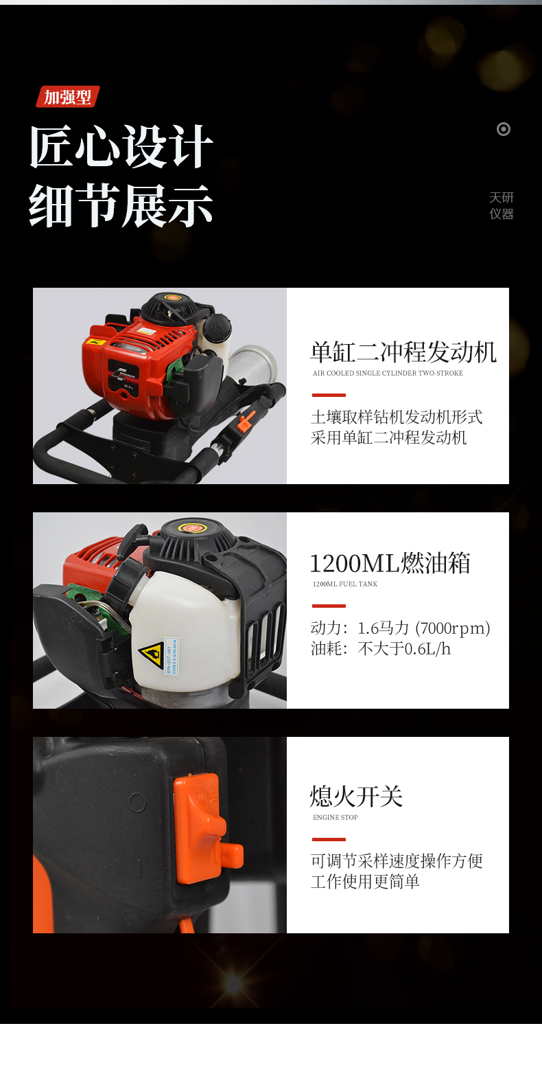 動力(汽油)土壤采樣器(汽油動力土鉆)土壤采樣器是本廠汲取廣大客戶意見、經多方用戶需求和市場調研,開發出的一款動力(汽油)土壤采樣器。儀器采用汽油機驅動、以大幅減免土壤取樣人員的勞動力和快速、取樣簡便而著稱。