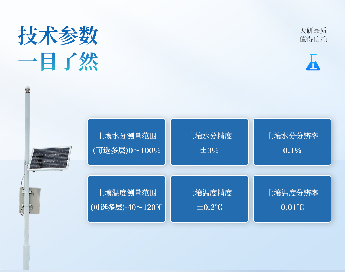| 土壤濕度 測(cè)量范圍:0~100% 測(cè)量精度:3% | 土壤溫度 測(cè)量范圍:-30℃~70℃ 測(cè)量精度:0.1℃ | 記錄間隔:30分~24小時(shí)(可調(diào)) | 測(cè)點(diǎn)間距:10cm | 輸出方式:支持USB接口數(shù)據(jù)導(dǎo)出 | 傳輸方式:4G或GPRS無(wú)線傳輸 | 存儲(chǔ)容量:無(wú)限云端存儲(chǔ) | 數(shù)據(jù)查看:移動(dòng)APP查看或PC端云平臺(tái)系統(tǒng)遠(yuǎn)程查看 | 供電方式:太陽(yáng)能電池板+鋰電池組合供電 | 防護(hù)外殼:PVC | 防護(hù)等級(jí):IP68 | 工作環(huán)境:-20℃~85℃ | 結(jié)構(gòu)外觀:集成管式(柱式) | 尺 寸:外徑6cm 高78.2cm |